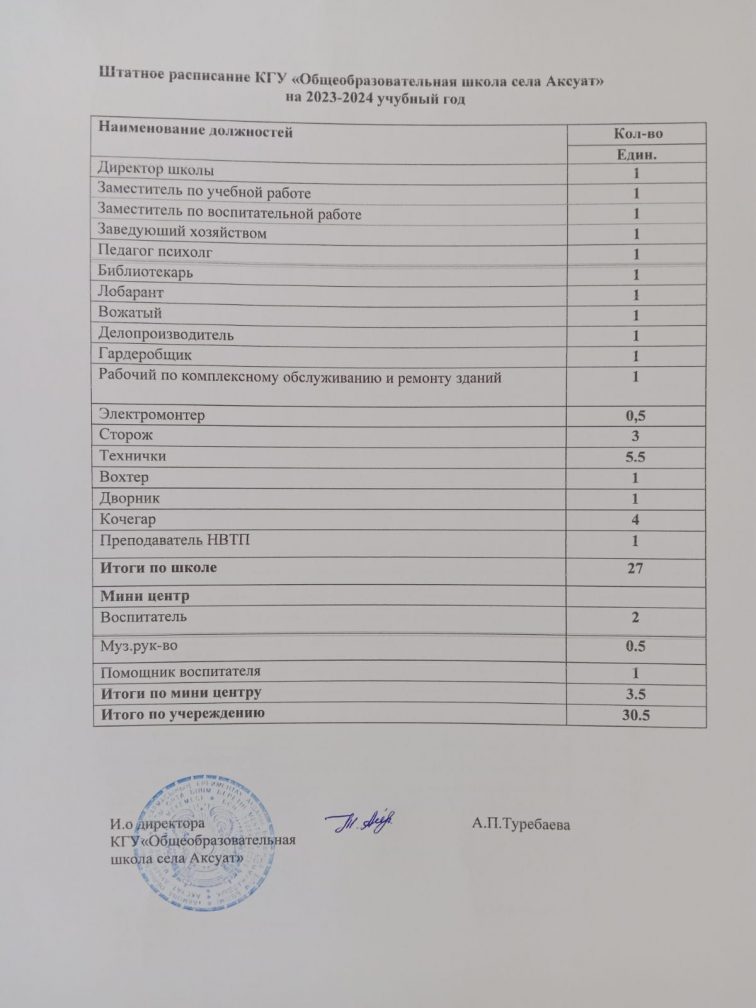 штаттық кесте 2023-2024